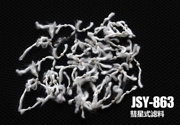 過濾時,由于核心和纖維絲束的比重差,核心起到了對纖維的壓密作用,由于核心尺寸較小,過濾斷面空隙分布的均勻性影響不大,起到過濾狀態(tài)既有縱向深層過濾,又有橫向深層過濾,從而提高了濾床的截污量、過濾精度和過濾速度。反沖洗時,由于核心和纖維絲束比重差,纖維絲束隨反沖洗水流而散開產(chǎn)生較強的擺動,再經(jīng)過空氣擦洗,濾料之間相互碰撞產(chǎn)生較強的擺動、翻轉,強化了反沖洗時濾料受到的機械作用力,使附著在纖維絲束表面的懸浮物顆粒很容易脫落,提高了纖維過濾體反沖洗洗凈度,反沖洗耗水量小。